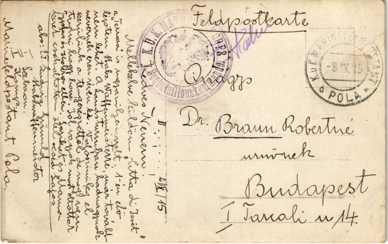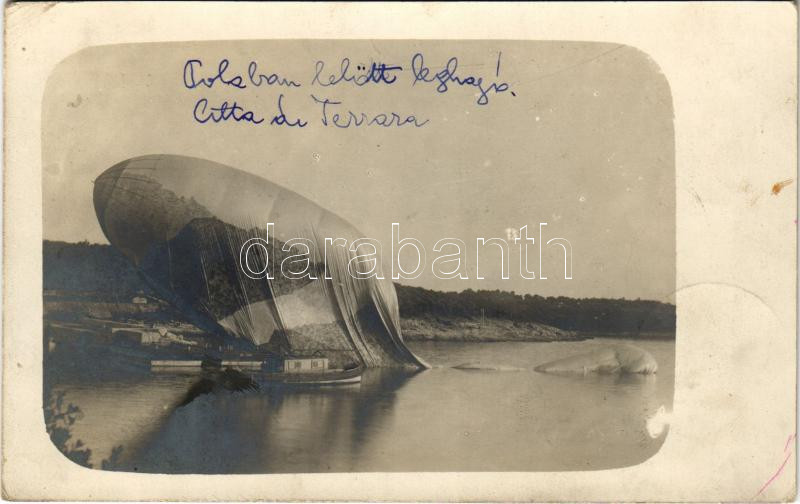 1915 A Pola felett lelőtt Citta di Jesi olasz léghajó maradványai, osztrák-magyar haditengerészet / K.u.K. Kriegsmarine / WWI Italian Citta di Jessi military balloon shot in Pula, Austro-Hungarian Navy. photo + "K.U.K. MATROSENKORPS I. Seebataillonskommando"
