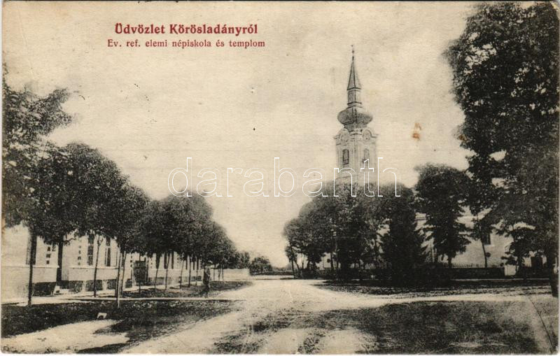 1915 Körösladány, Református elemi népiskola és templom https://www.darabanth.com/hu/453-Gyorsarveres/453.0/Kepeslapok/Magyarorszag~1000004/1915-Korosladany-Reformatus-elemi-nepiskola-es-templom~II3018997