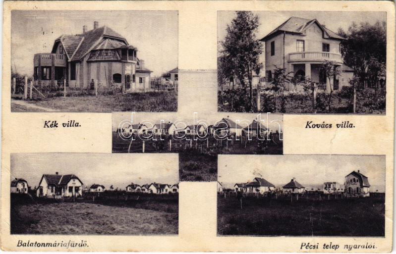 1930 Balatonmáriafürdő, Kék és Kovács villa, Pécsi telep nyaralói (fa) https://www.darabanth.com/hu/453-Gyorsarveres/453.0/Kepeslapok/Magyarorszag~1000004/1930-Balatonmariafurdo-Kek-es-Kovacs-villa-Pecsi-telep-nyaraloi-fa~II3020661