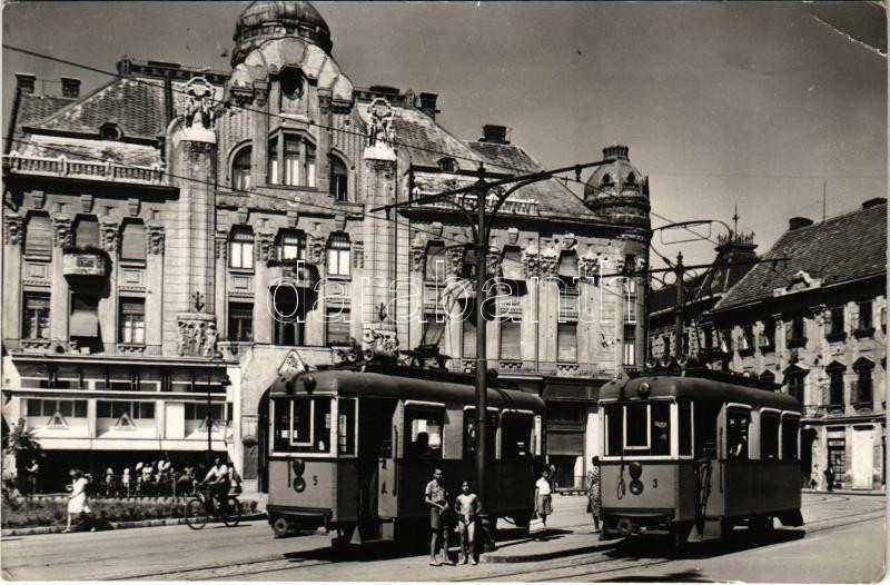 Leírás: Szombathely, Köztársaság tér, villamosok. Képzőművészeti Alap (EK)