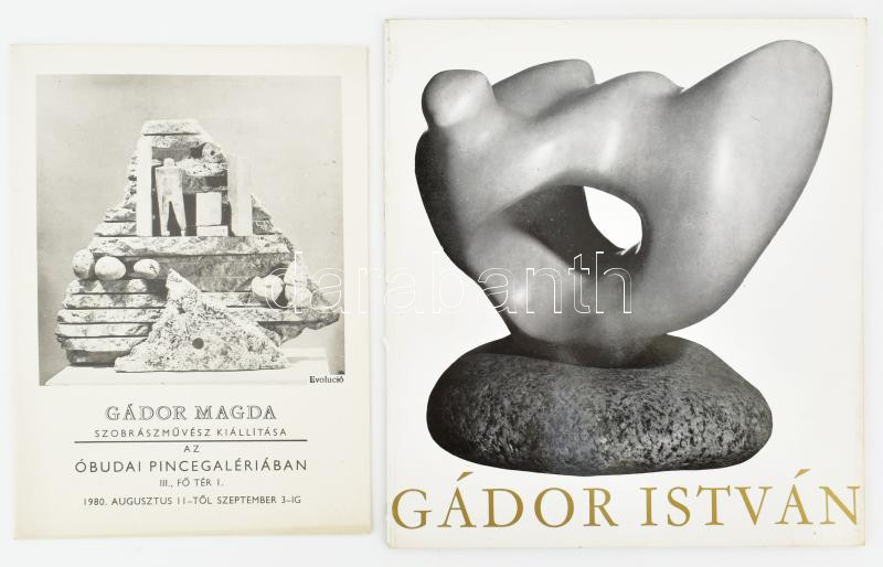 Leírás: 1971 Gádor István kiállítása, Műcsarnok, katalógus. 52p. + 1980 Gádor Magda szobrészművész kiállítása az Óbudai Pincegalériában, kihajtható kiállítási katalógus