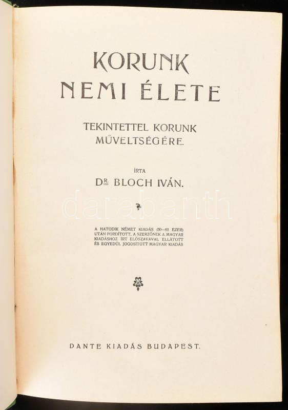 Bloch Iván: Korunk nem élete. Bp., én., Dante. Kiadói aranyozott egész... https://www.darabanth.com/hu/453-Gyorsarveres/453.0/Konyvek/Konyvek-Termeszettudomany-medicina~1500024/Bloch-Ivan-Korunk-nem-elete-Bp-en-Dante-Kiadoi-aranyozott-egeszvaszon-kotes-kisse-kopott-~II3017909
