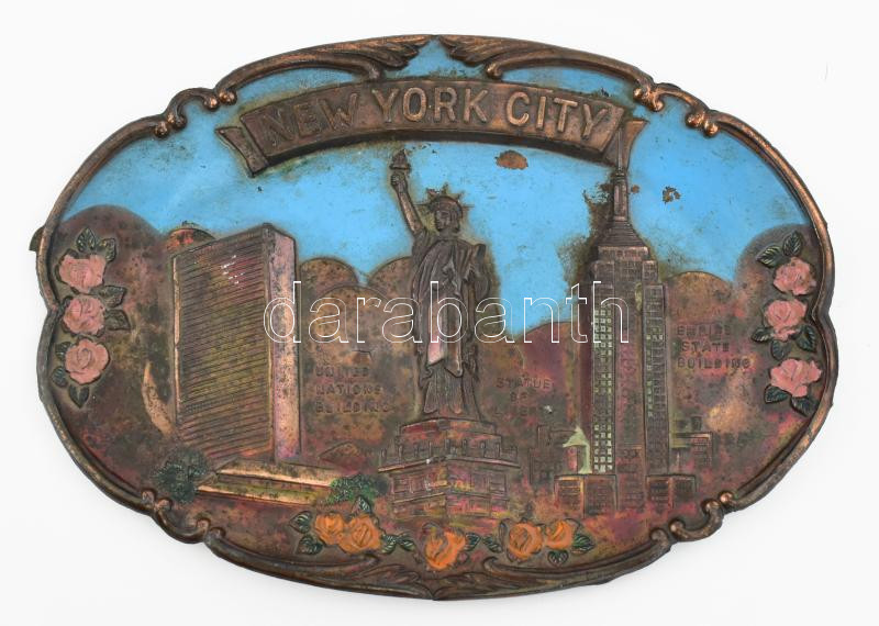Leírás: "New York City" retró fém emléktálka, zománcozott, jelzett (Made in Japan), kissé kopott, 15,5x10,5 cm