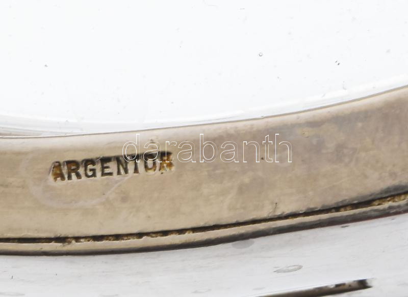 Leírás: Szecessziór Argentor cukorkínáló jelzett alpakka, üveg betéttel d: 17 cm