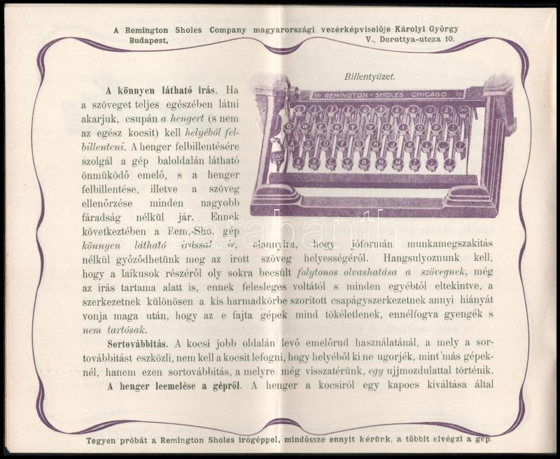cca 1910 A Remington Sholes Company Rem.-Sho. írógépeinek leírása https://www.darabanth.com/hu/453-Gyorsarveres/453.0/Mutargy-papirregiseg-egyeb/Nyomtatvanyok~1500013/cca-1910-A-Remington-Sholes-Company-Rem-Sho-irogepeinek-leirasa~II3022581