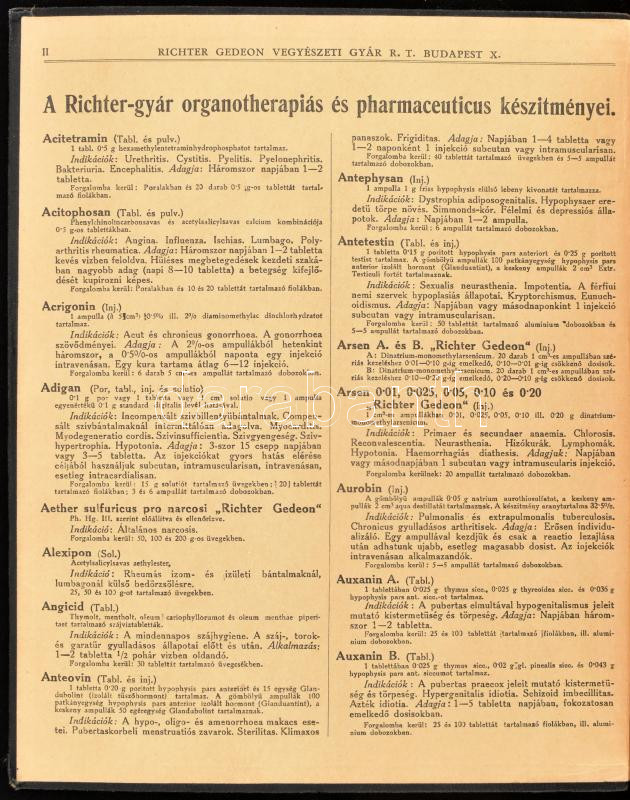 Leírás: 1934 Richter Gedeon Vegyészeti Gyár Rt. Orvosi Napló. Bp., Posner-ny., Kiadói aranyozott egészvászon-kötés, teljesen kitöltött .sok reklámmal