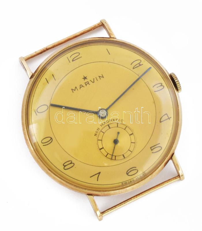 14K arany (Au) Marvin férfi karóra. Jelzett, működő, jó állapotban, pó... https://www.darabanth.com/hu/453-Gyorsarveres/453.0/Mutargy-papirregiseg-egyeb/Orak~500011/14K-arany-Au-Marvin-ferfi-karora-Jelzett-mukodo-jo-allapotban-potolt-koronaval-d-33-mm~II3018329