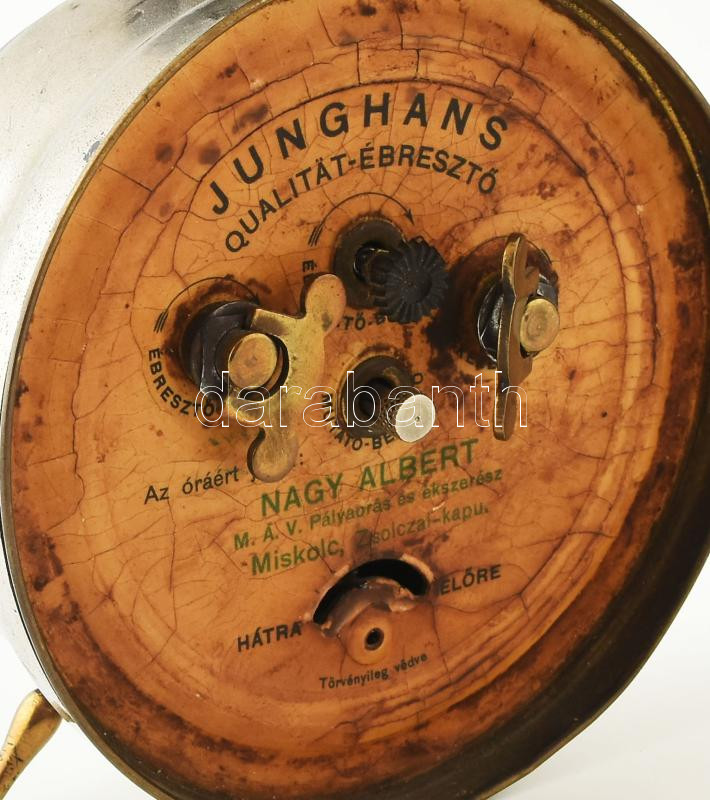 Junghans vekkeróra, Nagy Albert MÁV pályaórás Miskolc felirattal, korá... https://www.darabanth.com/hu/453-Gyorsarveres/453.0/Mutargy-papirregiseg-egyeb/Orak~500011/Junghans-vekkerora-Nagy-Albert-MAV-palyaoras-Miskolc-felirattal-koranak-megfelelo-allapotban-~II3017474