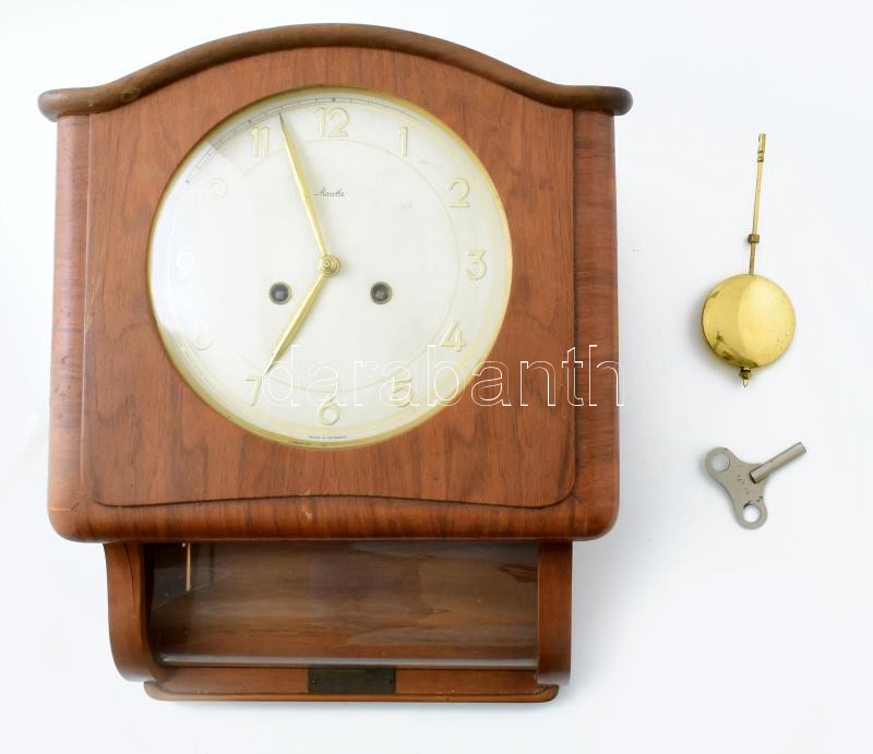 Leírás: Mauthe art deco felesütős falióra, inga járatos, működő, szép állapotban, kis karccal 34x44 cm