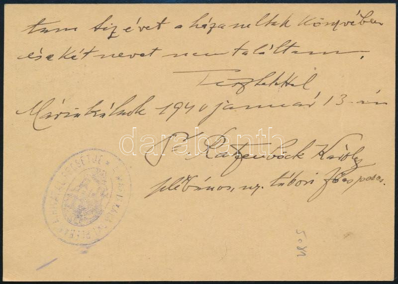 1940 Máriakálnok, Dr. Ratzenböck Károly plébános, ny. tábori főesperes... https://www.darabanth.com/hu/453-Gyorsarveres/453.0/Mutargy-papirregiseg-egyeb/Tortenelmi-dokumentumok-keziratok-erdekessegek~500021/1940-Mariakalnok-Dr-Ratzenbock-Karoly-plebanos-ny-tabori-foesperes-sajat-kezuleg-megirt~II3019405