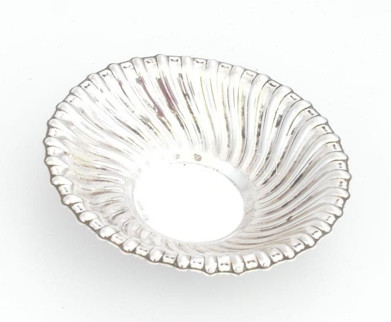 Leírás: Ezüst (Ag) hullámos peremű tálka, jelzett, hátoldalán ragasztásnyomokkal, d: 8 cm, nettó: 16,6 g