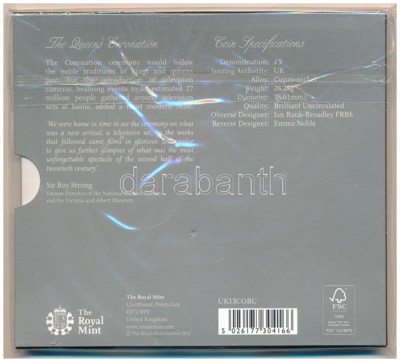 Nagy-Britannia 2013. 5P Cu-Ni "A királynő koronázásának 60. évfordulója" dísztokban, tájékoztatóval T:UNC apró patina