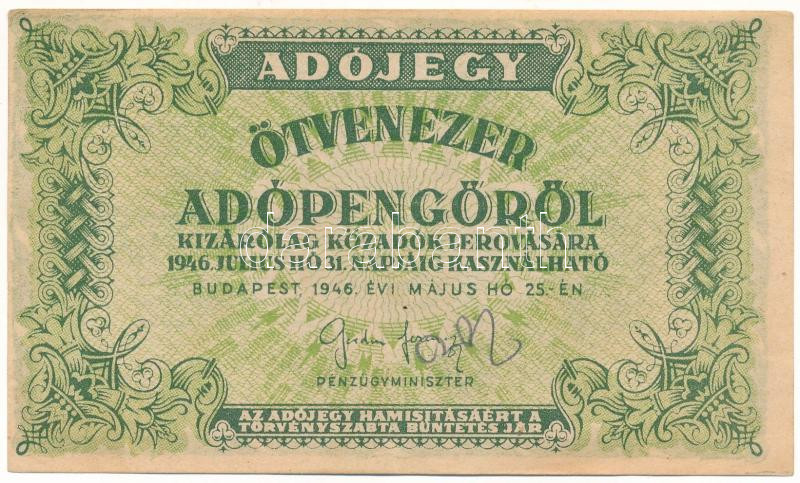 1946. 50.000AP sorszám nélkül, nem vízjeles papíron, a hátoldali szövegben számos helyesírási hibával (lemaradt / jel, hiányzó ékezetek) T:VF,F kis ceruzás firka