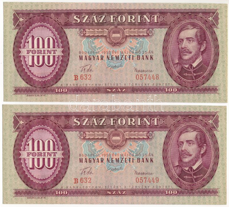 Leírás: 1957. 100Ft (2x) sorszámkövetők "B 632 057448 - B 632 057449" T:AU
