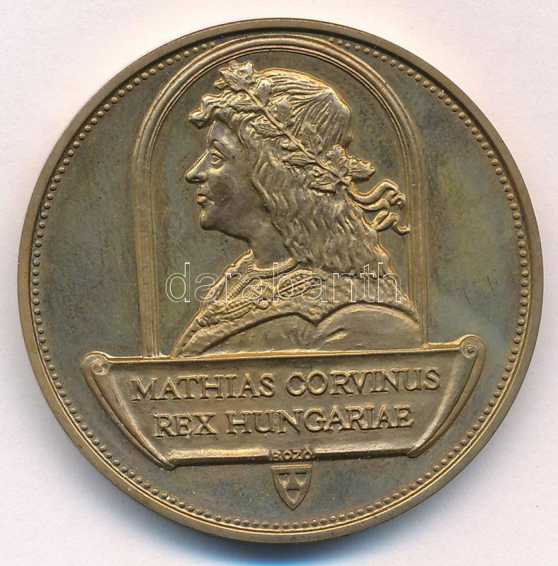 Bozó Gyula (1913-2004) 1992. "Mathias Corvinus Rex Hungariae / Grand Hotel Corvinus - Kempinski Budapest - Sept '92" aranyozott fém emlékérem (42,5mm) T:UNC,AU