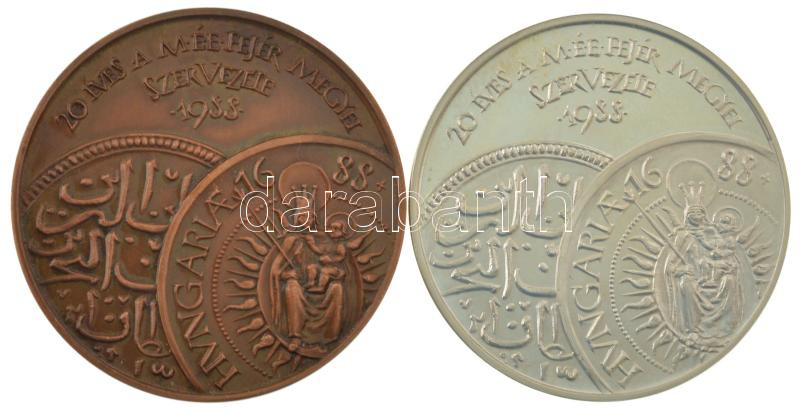 Fritz Mihály (1947-) 1988. "20 éves a MÉE Fejér megyei Szervezete 1988 / Veretett a törökök kivonulásának 300. évfordulóján" bronz emlékérem (42,5mm) + jelzett Ag emlékérem (35,17g/0.835/42,5mm) T:AU, AU (PP) Adamo SF10