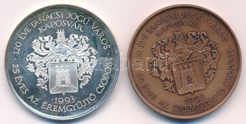 Fritz Mihály (1947-) 1993. "120 éve tanácsi jogú város Kaposvár - 25 éves az Éremgyűjtő Csoport / Kelta Oppidum és verde - Szalacska" Ag emlékérem (35,89g/0.835/42,5mm) T:UNC,AU (eredetileg PP) patina