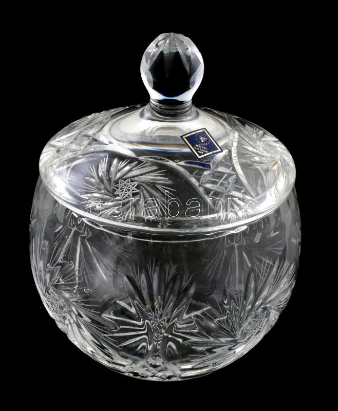 Leírás: Ólomkristály bonbonier, etikettel jelzett, hibátlan (némi tisztításra szorul), m: 19 cm, d: 14,5 cm