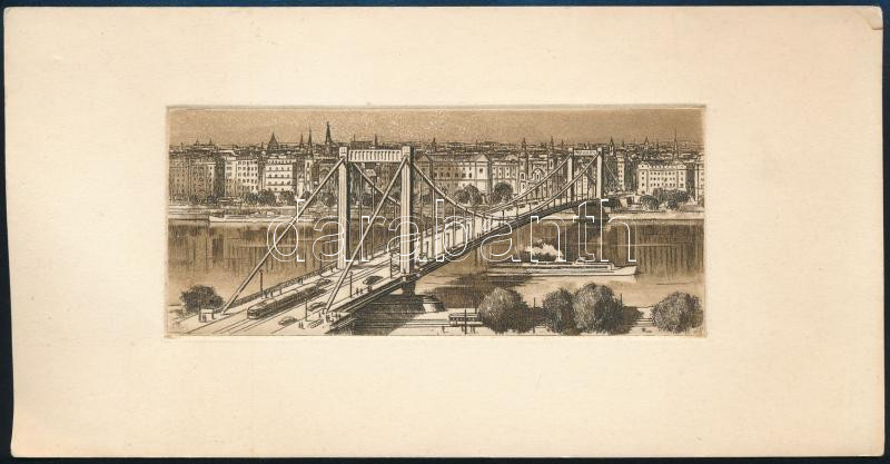 Leírás: Vertel József (1922-1993): Budapest, Erzsébet híd. Rézkarc, papír, jelzés nélkül , 12x6,5 cm