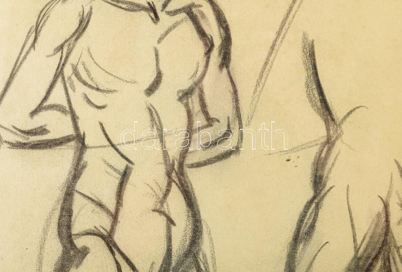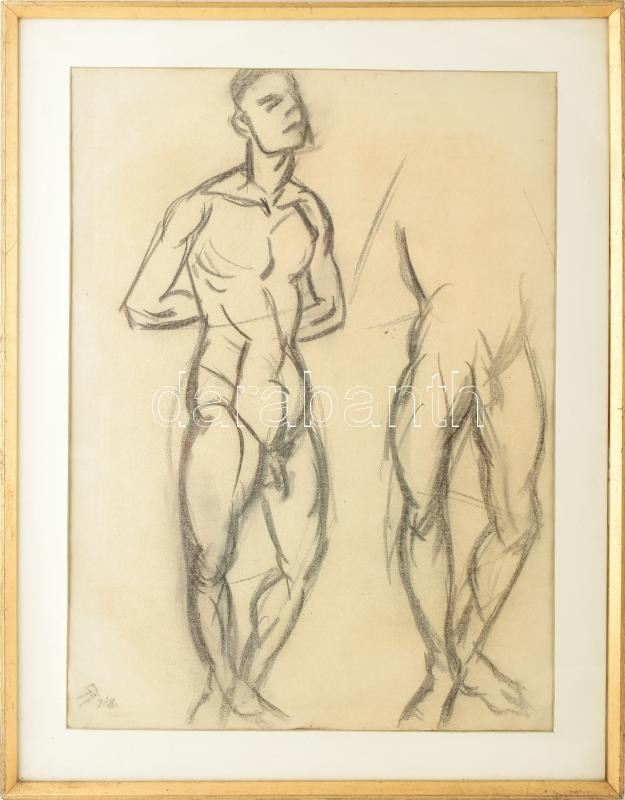 Leírás: Olvashatatlan jelzéssel: Akt tanulmányok, 1918. Szén, papír. 62x45 cm. Üvegezett fakeretben.