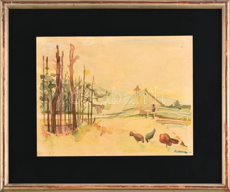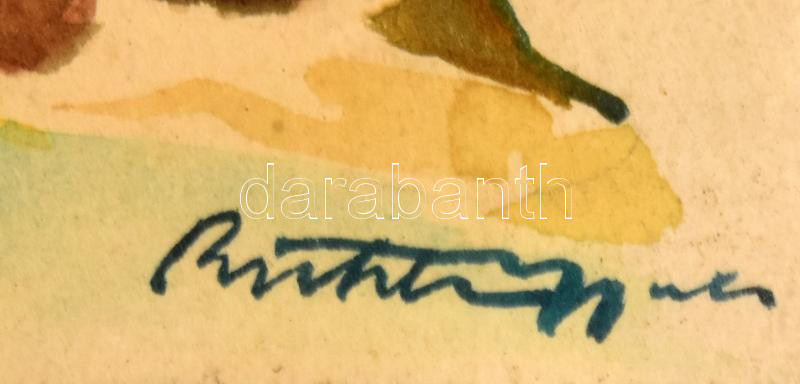 Leírás: Olvashatatlan jelzéssel: Tanya. Akvarell, papír. Üvegezett fakeretben, 20x26,5 cm.