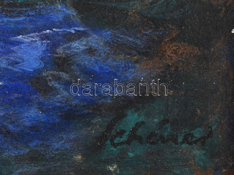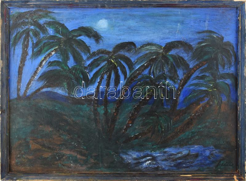 Leírás: Schéner jelzéssel: Holdfény a pálmafák felett. Olaj, farost, fakeretben, 50x69 cm
