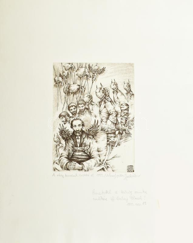 Budai Tibor (1946-): A vágy bennünk örökké él, 1993. Rézkarc, papír, jelzett, próbanyomat, lap alján Budai Tibor autográf ajándékozási soraival Szalay Pál (1953-2015) festőművész részére 1993-ból. 19x14 cm