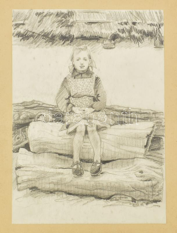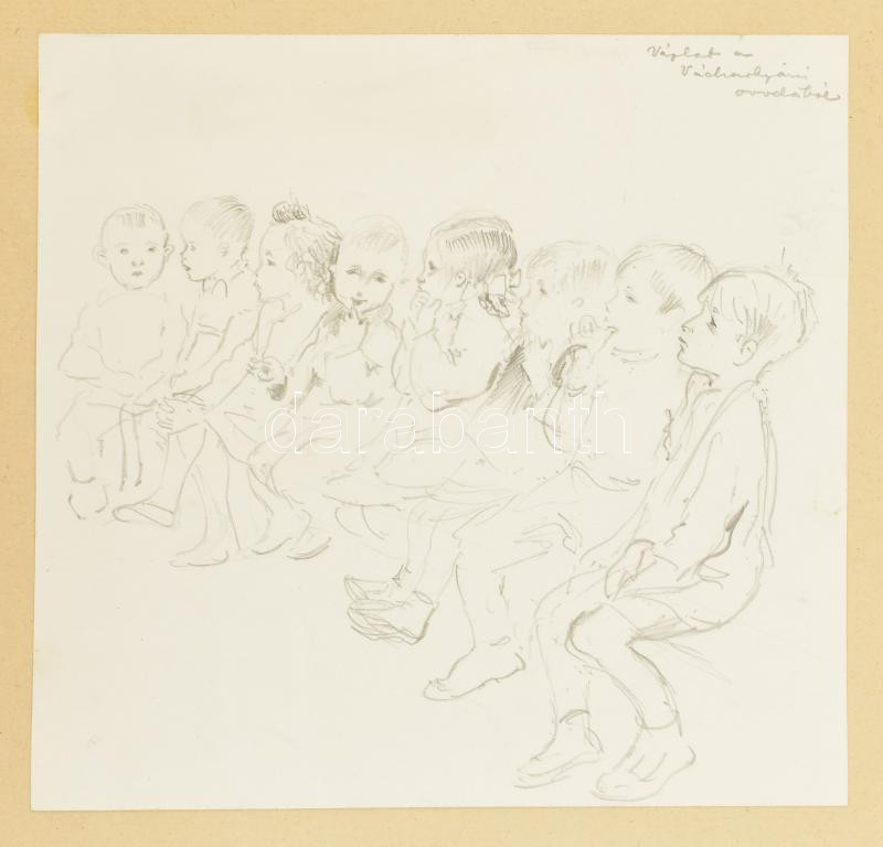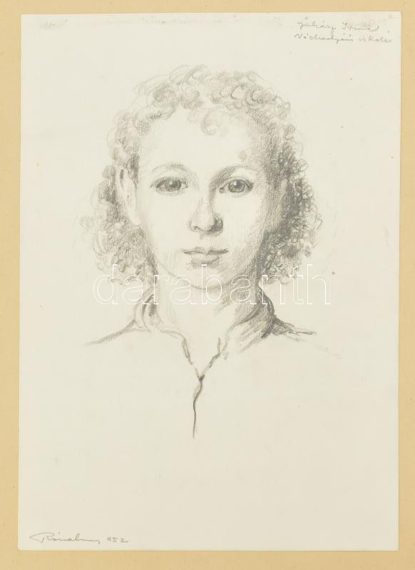 Róna Emy (1904-1988): Váchartyáni óvodások és iskolás, 1952, 3 db mű. Ceruza, papír, egyik jelzett, egy másik Róna Emy autográf feliratával, papírra kasírozva, 19×20 és 1927 cm körüli méretekben