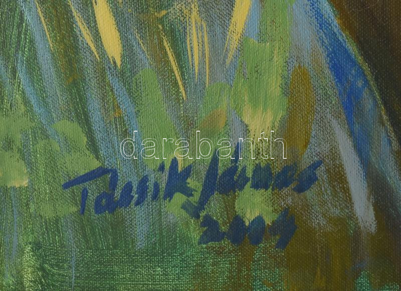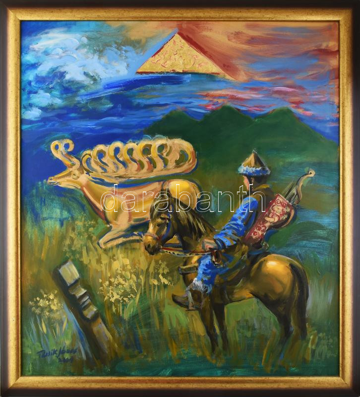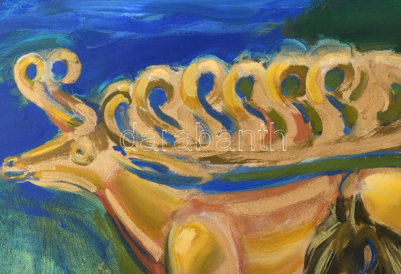 Tácsik János (1959-2005): Csodaszarvas, 2004. Olaj, vászon. Jelezve jobbra lent. Fakeretben. 100x90 cm. KIZÁRÓLAG SZEMÉLYES ÁTVÉTEL, NEM POSTÁZZUK! / ONLY PERSONAL COLLECTION AT OUR OFFICE!