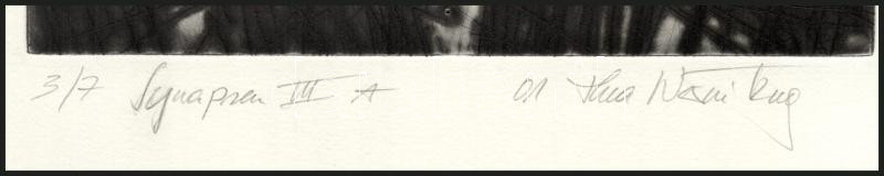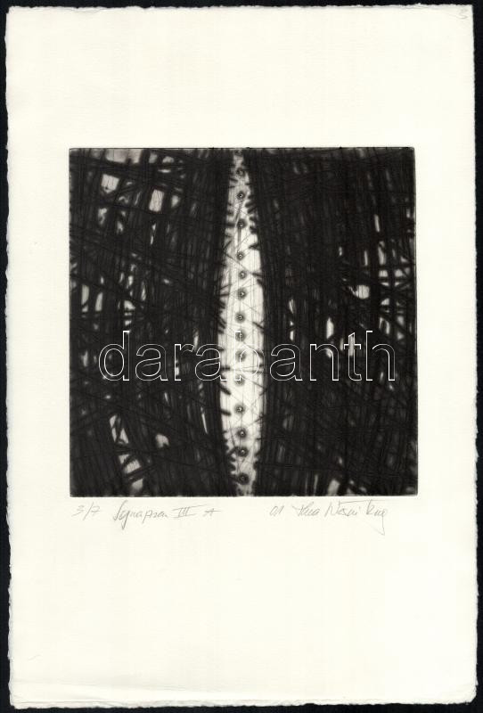 Leírás: Thea Wernitznig (?-): Synapsen III. A. Hidegtű, papír, jelzett, számozott (3/7). 19,5x19,5 cm