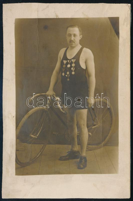 cca 1910 Kerékpáros sok éremmel dekorálva, keményhátú fotó Székely Ala... https://www.darabanth.com/hu/454-Gyorsarveres/454.0/Fotomuveszet/Foto~500023/cca-1910-Kerekparos-sok-eremmel-dekoralva-kemenyhatu-foto-Szekely-Aladar-budapesti-Vaci~II3028245