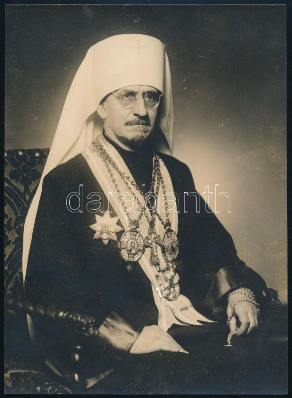 cca 1940 Keleti pátriárka teljes díszben. 17x23 cm
