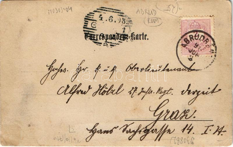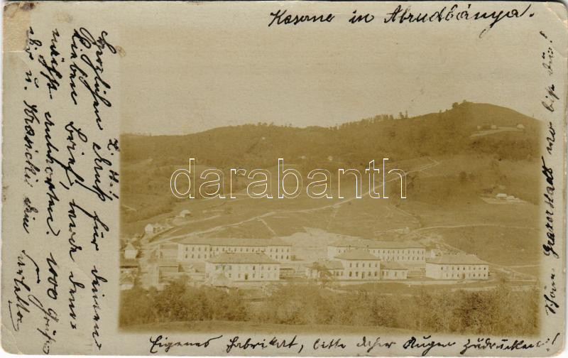 1898 (Vorläufer) Abrudbánya, Abrud; Franz Josef-Kaserne / Ferenc Józse... https://www.darabanth.com/hu/454-Gyorsarveres/454.0/Kepeslapok/Erdely~1000006/1898-Vorlaufer-Abrudbanya-Abrud-Franz-Josef-Kaserne-Ferenc-Jozsef-laktanya-KuK-militar~II3023880