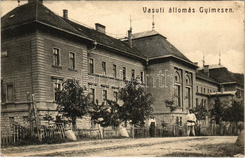 Leírás: 1908 Csíkgyimes, Gyimes, Ghimes; vasútállomás / railway station (EK)
