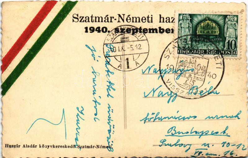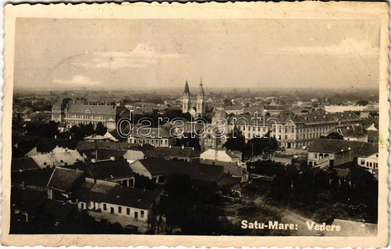 Leírás: 1940 Szatmárnémeti, Szatmár, Satu Mare; Vedere / látkép, izraelita templom, zsinagóga. Huszár Aladár kiadása / general view with synagogue + "1940 Szatmárnémeti visszatért" So. Stpl. (fl)