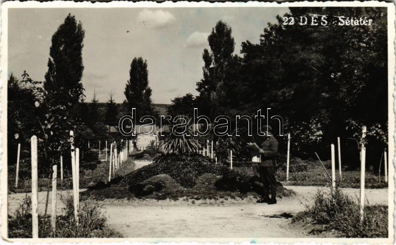 Leírás: 1942 Dés, Dej; Sétatér katonával / promenade and soldier