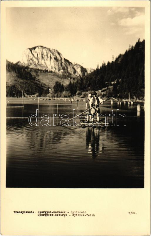 Gyilkos-tó, Ghilcos, Lacul Rosu; Gyergyói-havasok, tutajos pár a tóban... https://www.darabanth.com/hu/454-Gyorsarveres/454.0/Kepeslapok/Erdely~1000006/Gyilkos-to-Ghilcos-Lacul-Rosu-Gyergyoi-havasok-tutajos-par-a-toban-Muntii-Giurgeu-rafting~II3027949