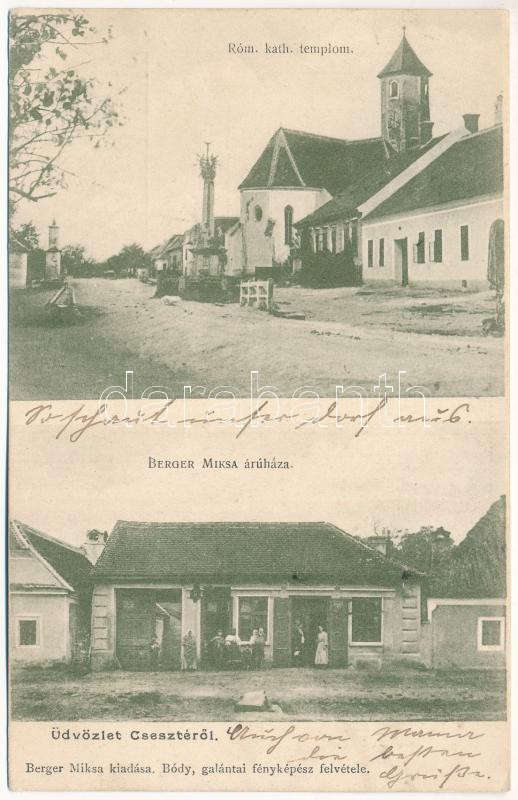 Cseszte, Castá; Római katolikus templom, Berger Miksa áruháza, saját ü... https://www.darabanth.com/hu/454-Gyorsarveres/454.0/Kepeslapok/Felvidek~1000007/Cseszte-Casta-Romai-katolikus-templom-Berger-Miksa-aruhaza-sajat-uzlete-es-kiadasa-Bod~II3027934