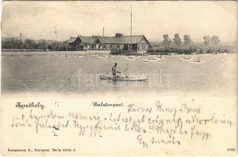 1902 Keszthely, Balaton-part, evezős csónak. Kampmann H. kiadása (EK) https://www.darabanth.com/hu/454-Gyorsarveres/454.0/Kepeslapok/Magyarorszag~1000005/1902-Keszthely-Balaton-part-evezos-csonak-Kampmann-H-kiadasa-EK~II2491048