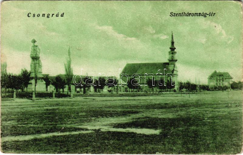 Csongrád, Szentháromság tér, templom. Bozó és Justin kiadása (fa) https://www.darabanth.com/hu/454-Gyorsarveres/454.0/Kepeslapok/Magyarorszag~1000005/Csongrad-Szentharomsag-ter-templom-Bozo-es-Justin-kiadasa-fa~II3024564