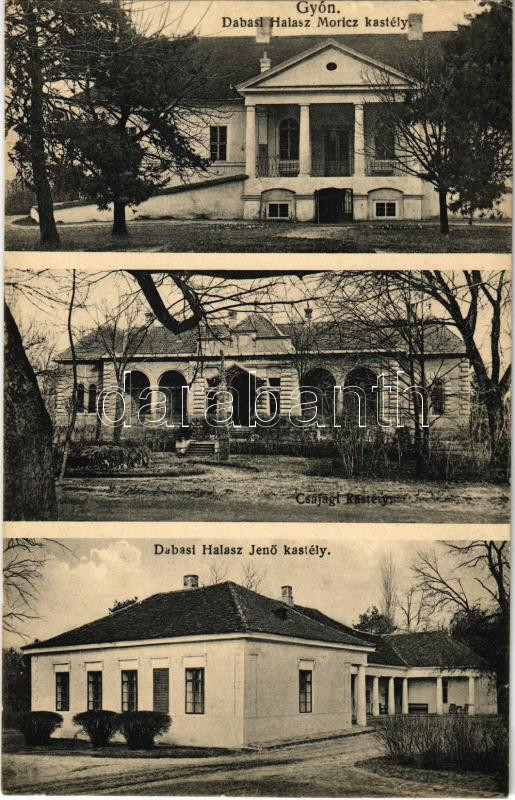 Gyón, Dabasi Halász Móricz, Dabasi Halász Jenő és Csajági kastély (EK) https://www.darabanth.com/hu/454-Gyorsarveres/454.0/Kepeslapok/Magyarorszag~1000005/Gyon-Dabasi-Halasz-Moricz-Dabasi-Halasz-Jeno-es-Csajagi-kastely-EK~II3024442