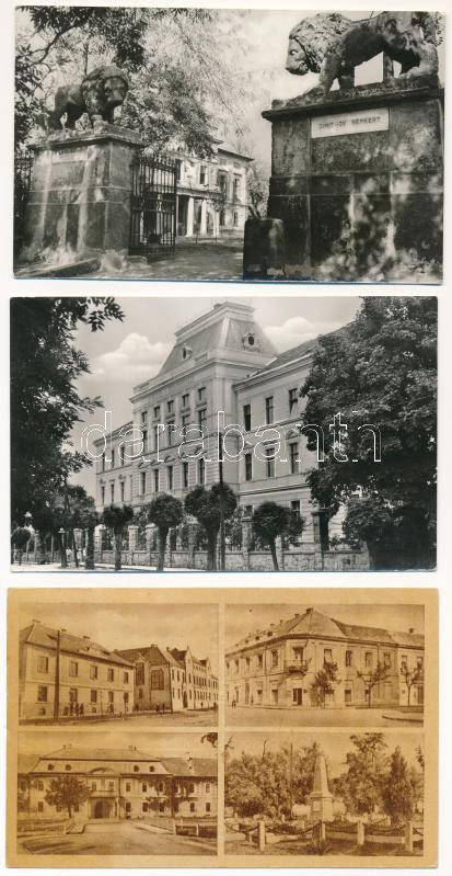 Leírás: Gyöngyös - 7 db modern Képzőművészeti Alap képeslap (kisvasút, vasútállomás, MÁVAUT autóbusz állomás, Hősök szobra, Dimitrov Népkert, Állami gimnázium, lakótelep, Hungária nagy szálló)