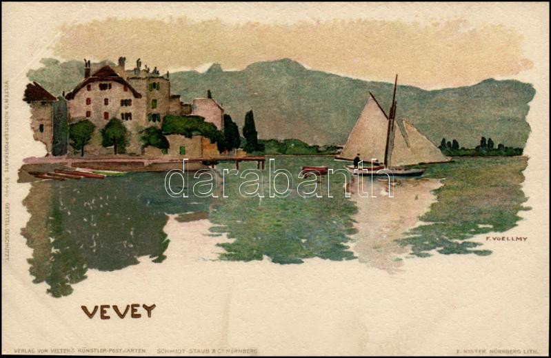 Vevey, Velten's Künstlerpostkarte No. 440. litho s: F. Voellmy https://www.darabanth.com/hu/454-Gyorsarveres/454.0/Kepeslapok/Svajc~1000063/Vevey-Veltens-Kunstlerpostkarte-No-440-litho-s-F-Voellmy~II1306826