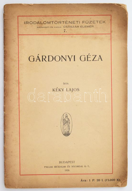 Kéky Lajos: Gárdonyi Géza. Irodalomtörténeti Füzetek 7. Bp., 1926, Pal... https://www.darabanth.com/hu/454-Gyorsarveres/454.0/Konyvek/Konyvek-Egyeb-ritkasagok~1500035/Keky-Lajos-Gardonyi-Geza-Irodalomtorteneti-Fuzetek-7-Bp-1926-Pallas-Kiadoi-papirkotC3~II3030710