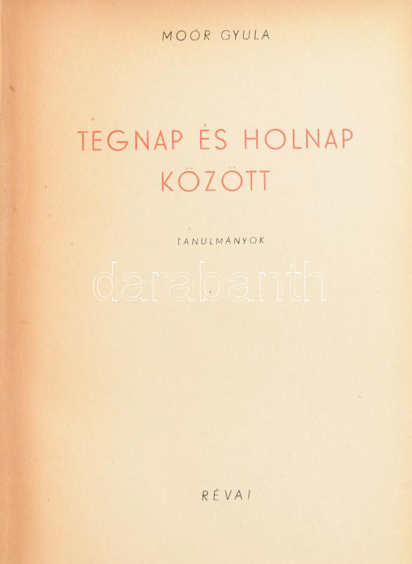 Moór Gyula: Tegnap és holnap között. Budapest, 1947, Révai. Kiadói fél... https://www.darabanth.com/hu/454-Gyorsarveres/454.0/Konyvek/Konyvek-Egyeb-ritkasagok~1500035/Moor-Gyula-Tegnap-es-holnap-kozott-Budapest-1947-Revai-Kiadoi-felvaszon-kotes-Kijar~II3031483