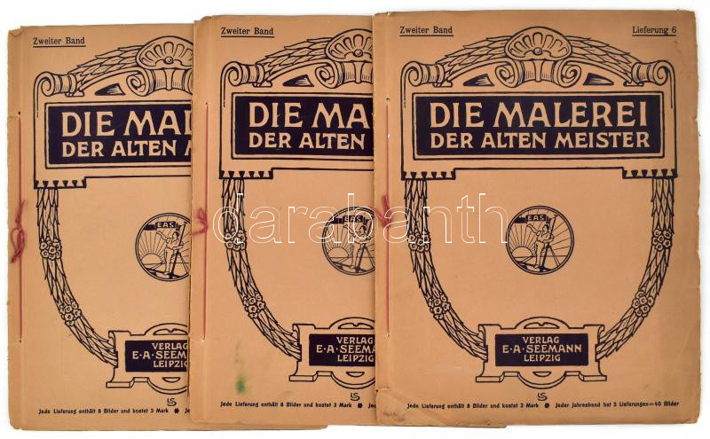Leírás: Die Malerei der Alten Meister. Zweiter Band, Lieferung 6, 8, 9. Leipzig, Verlag E. A. Seemann. Kiadói papírkötés, kopottas állapotban.