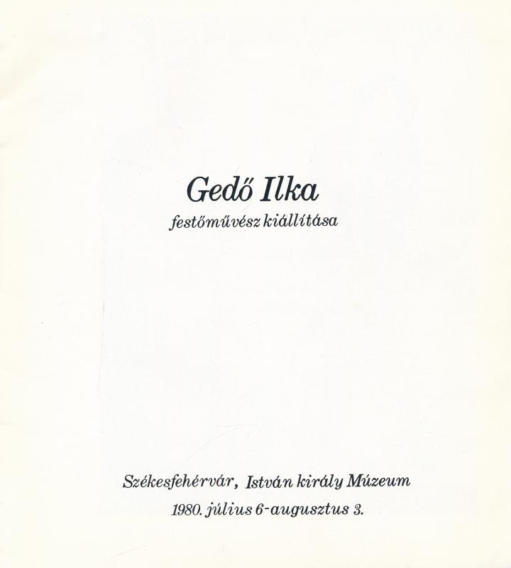 Gedő Ilka festőművész kiállítása. Székesfehérvár, 1980, István Király Múzeum. Kiadói papírkötés.;