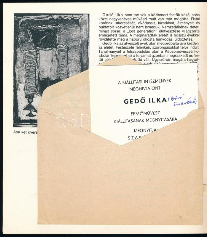 Gedő Ilka festőművész kiállítása. Meghívóval. Bp., 1982., Műcsarnok. Kiadói papírkötés.;