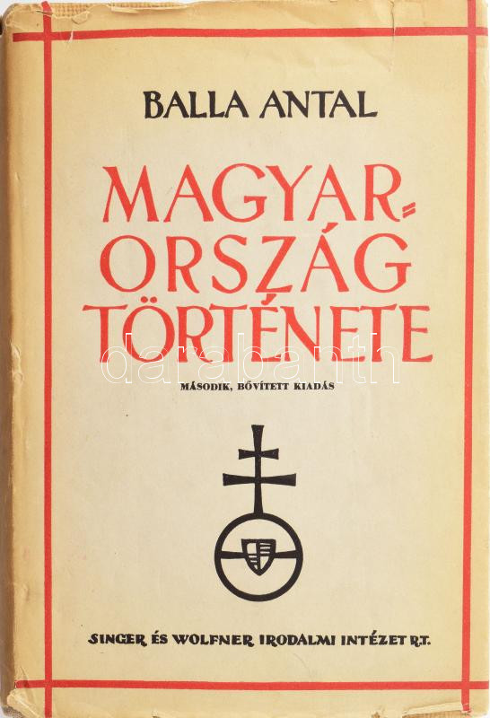 Balla Antal: Magyarország története. Bp.,[1942], Singer és Wolfner, 355+1 p. Második kiadás. Horváth Endre egészoldalas térképeivel illusztrált. Kiadói félvászon-kötés, szakadt kiadói papír védőborítóban, az elülső kötéstábla felső részén ütődésnyommal.