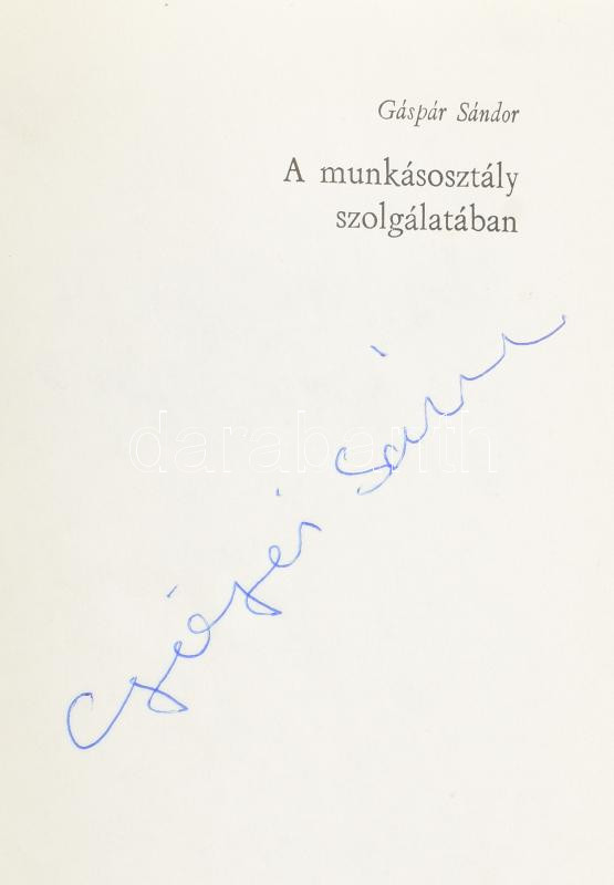 Gáspár Sándor: A munkásosztály szolgálatában. Méhes Lajos előszavával. Bp., 1983, Népszava. Első kiadás. Kiadói papírkötés, kissé fakó gerinccel. A szerző, Gáspár Sándor (1917-2002) kommunista politikus által aláírt példány!